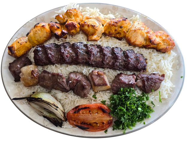 Our chicken and beef kebabs are grilled to perfection, seasoned with authentic Mediterranean spices, and made fresh daily. The chicken is tender and juicy, while the beef is rich, flavorful, and flame-kissed for that perfect char. Served with rice, salad, warm pita, and our signature sauces — it’s a taste you won’t forget..