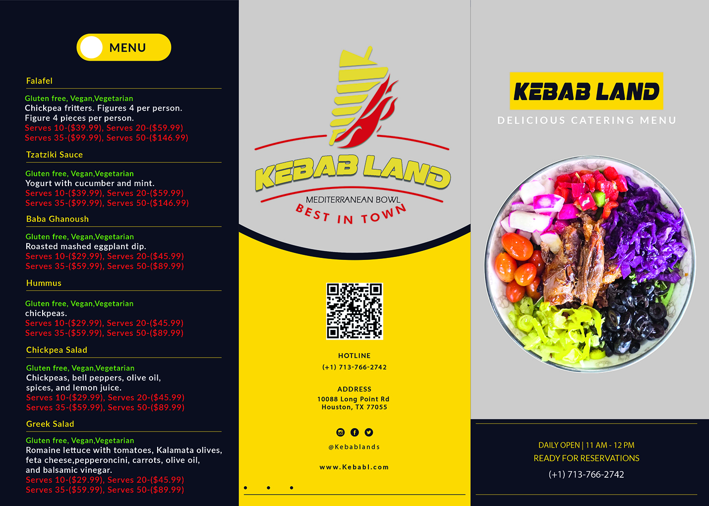 At Kebab Land, our chicken and beef shawarma are marinated to perfection using authentic Mediterranean spices and slow-roasted on a vertical grill for bold flavor in every bite. Whether you crave tender, juicy chicken or rich, seasoned beef, our shawarma wraps and plates are served hot, fresh, and loaded with taste. Pair it with our house-made garlic or tahini sauce for the perfect finish!.