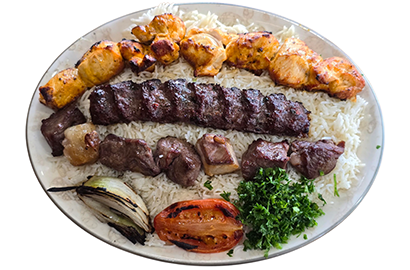 Our chicken and beef kebabs are grilled to perfection, seasoned with authentic Mediterranean spices, and made fresh daily. The chicken is tender and juicy, while the beef is rich, flavorful, and flame-kissed for that perfect char. Served with rice, salad, warm pita, and our signature sauces — it’s a taste you won’t forget..